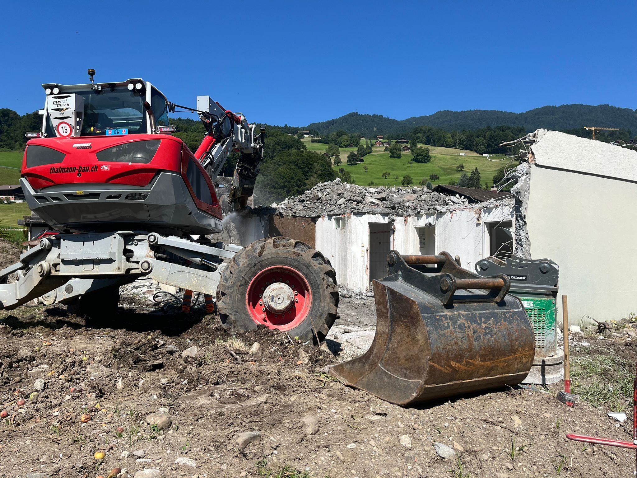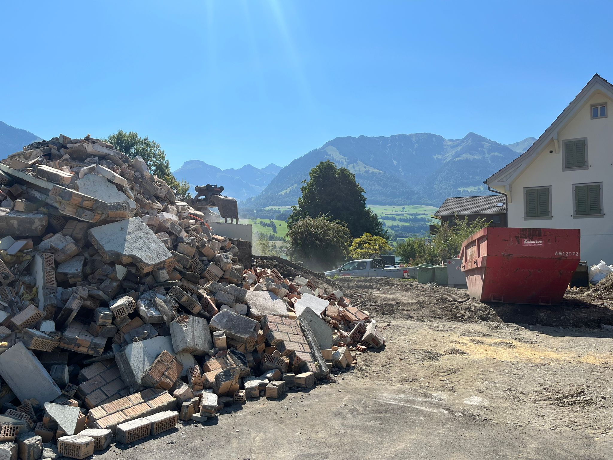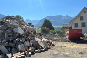 Die Abrissarbeiten für das neue Einfamilienhaus haben begonnen. Jetzt geht es mit grossen Schritten in Richtung Neubau, wir freuen uns auf die kommenden Bauphasen!