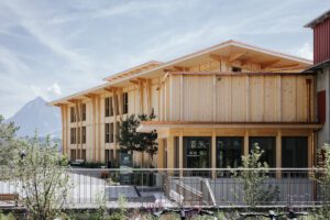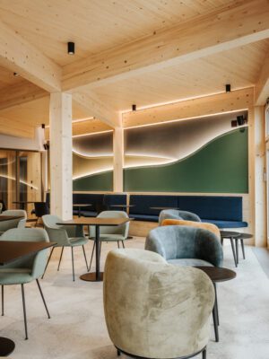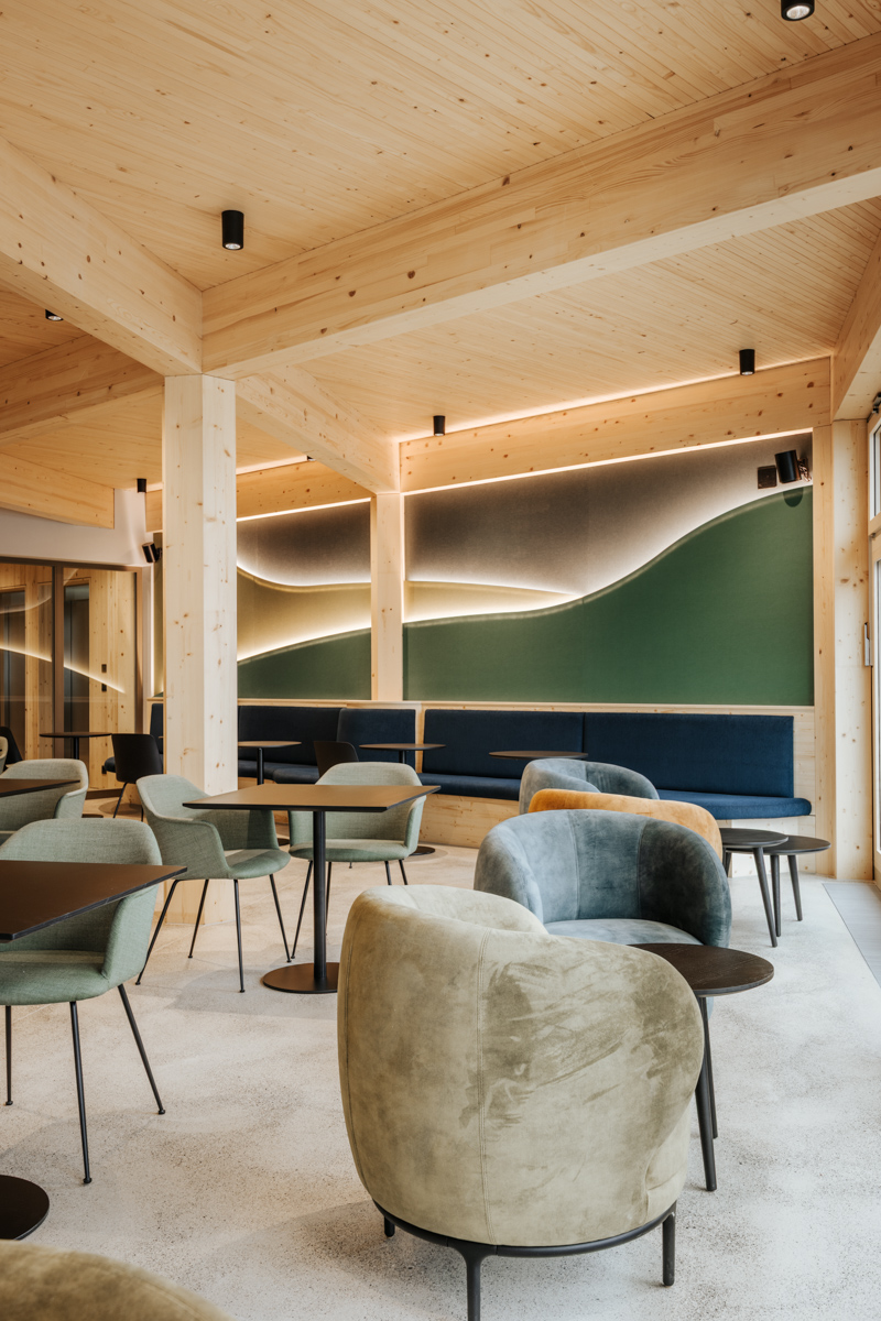Die öffentlichen Bereiche im Scharnier sind offen, einladend und verbinden sich fließend mit dem Bestand und der Landschaft. Architektur und Natur treten in einen stillen Dialog, der spürbar bleibt, nicht laut, sondern echt.