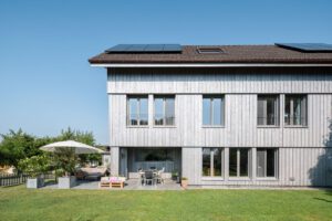 Dieses neu errichtete Einfamilienhaus in Mauren überzeugt durch klare Linien, natürliche Materialien und zukunftsorientierte Technik. Die Fassade in Holzverschalung strahlt Ruhe und Beständigkeit aus. Ein Zuhause, das Architektur und Wohnqualität auf den Punkt bringt.