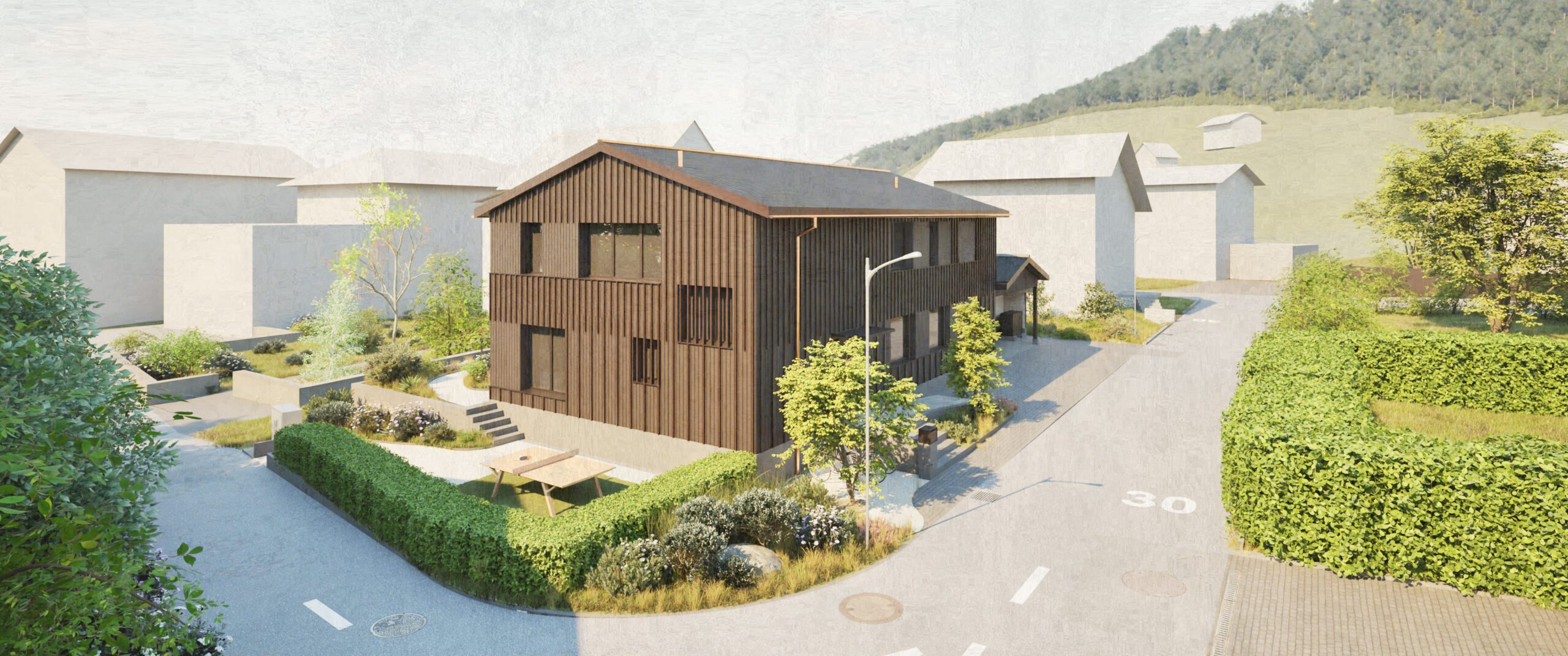 In unmittelbarer Nähe zum Sarner See wird in der Ziegelhüttenstrasse ein modernes Einfamilienhaus realisiert. Die ruhige Form des Baukörpers ermöglicht ein harmonisches Zusammenspiel mit der umliegenden Bebauung und Landschaft. Durch den Einsatz von hochwertigem Holz bei der Fassadengestaltung entsteht ein warmes, einladendes Erscheinungsbild, das die natürliche Atmosphäre der Umgebung unterstreicht.